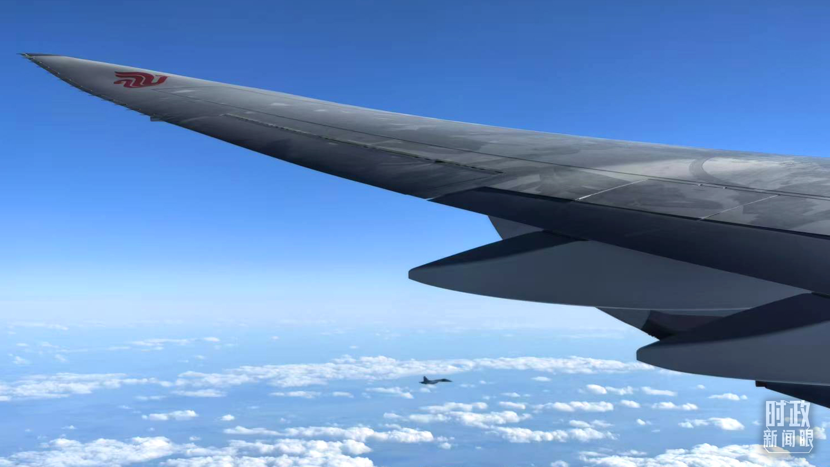 俄羅斯戰(zhàn)機升空護航。(總臺央視記者李錚拍攝)