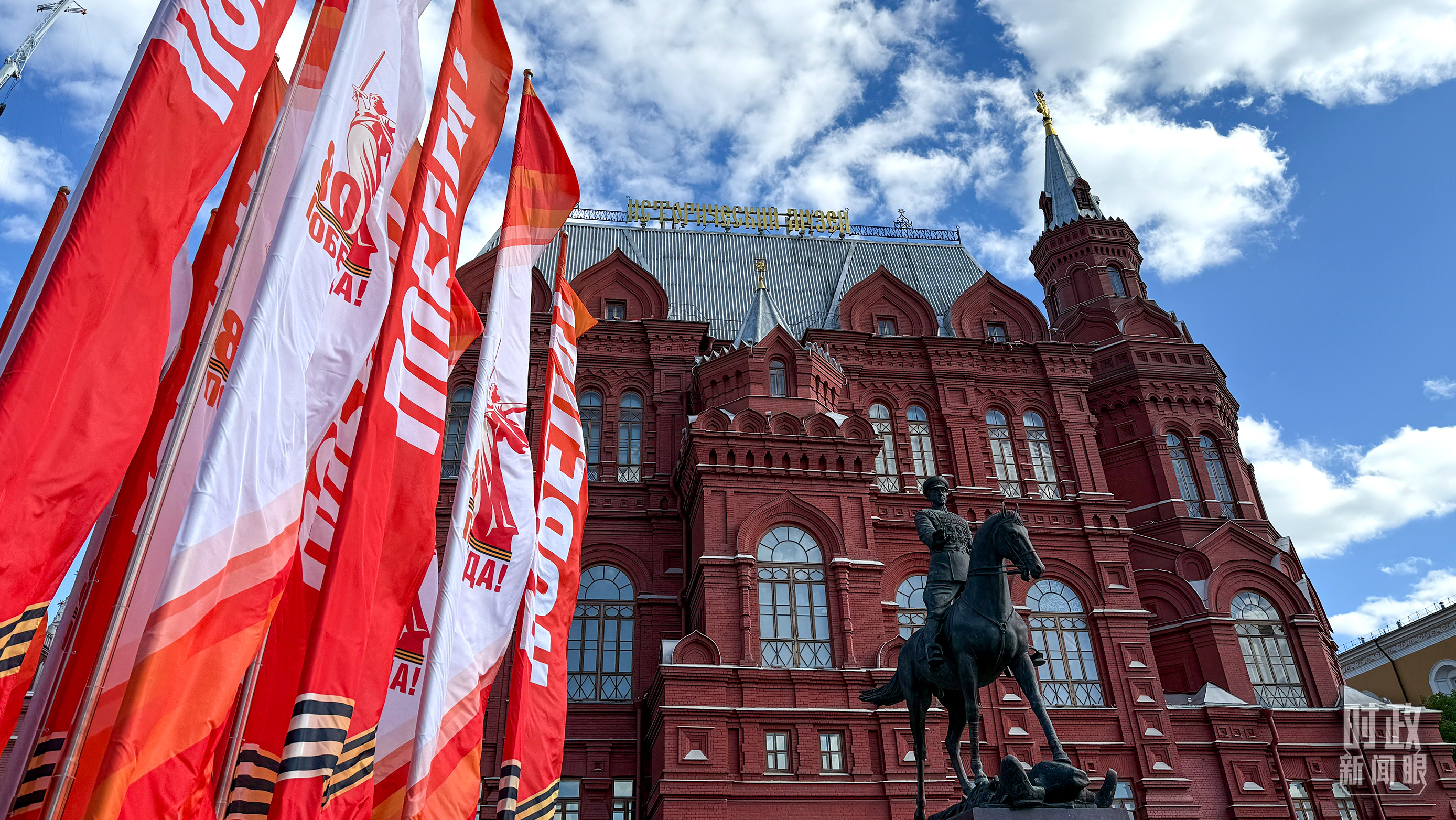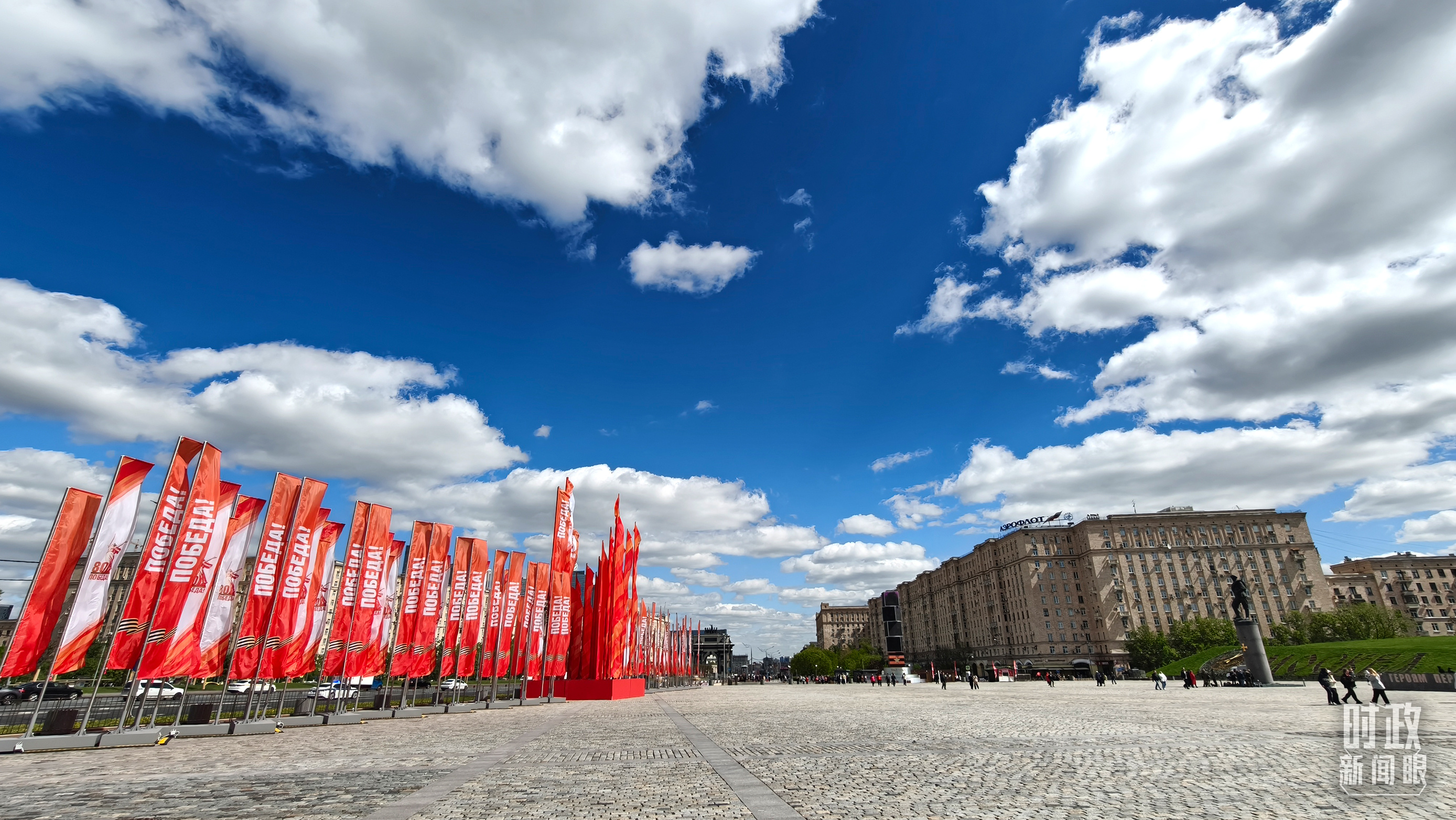 莫斯科街頭的勝利日旗幟。(總臺央視記者楊波拍攝)