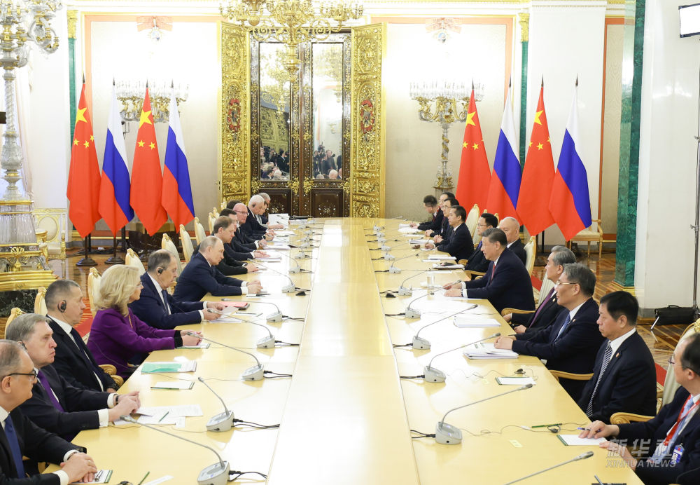 當?shù)貢r間5月8日上午,俄羅斯總統(tǒng)普京同中國國家主席習(xí)近平在莫斯科克里姆林宮舉行會談。