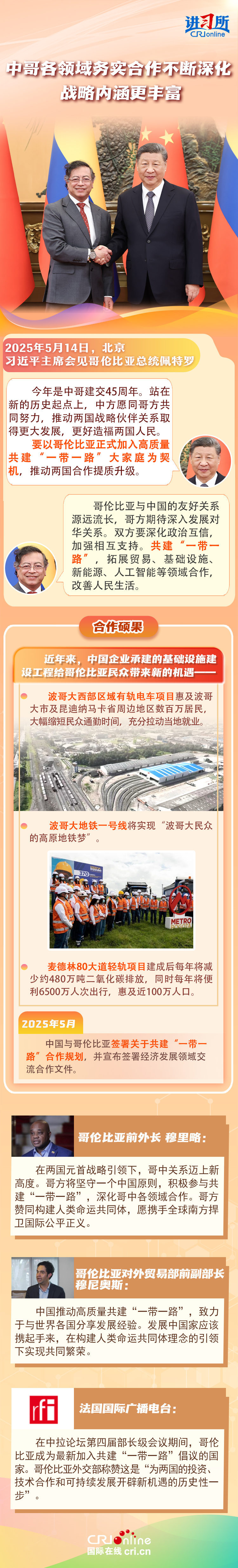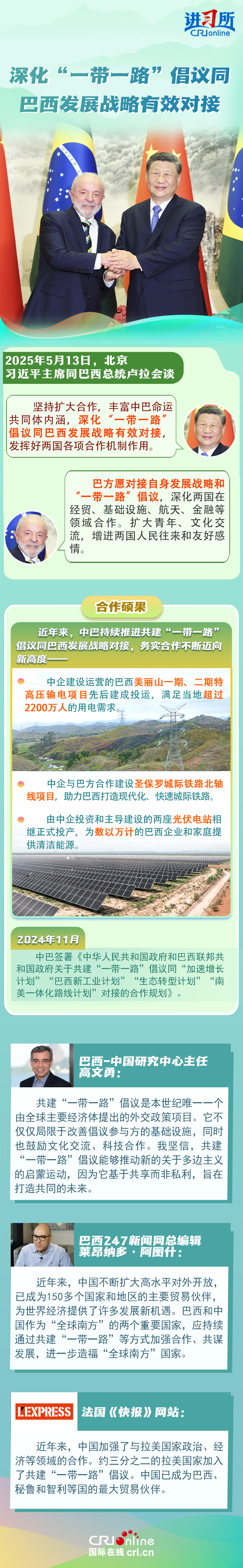 習(xí)近平主席在這三場雙邊外事活動(dòng)中,均提到了共建“一帶一路”倡議:“深化‘一帶一路’倡議同巴西發(fā)展戰(zhàn)略有效對接”“要以哥倫比亞正式加入高質(zhì)量共建‘一帶一路’大家庭為契機(jī),推動(dòng)兩國合作提質(zhì)升級”“雙方要落實(shí)好共建‘一帶一路’合作規(guī)劃”……10多年來,在習(xí)近平主席親自擘畫和推動(dòng)下,共建“一帶一路”從中國倡議走向國際實(shí)踐,取得了實(shí)打?qū)?、沉甸甸的成就?/p>