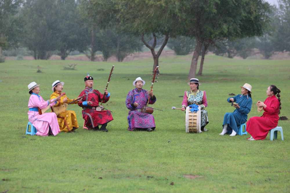 2024年7月16日,《格薩(斯)爾》史詩(shī)說唱傳承人在內(nèi)蒙古赤峰市巴林右旗戶外表演。(胡斯楞攝)