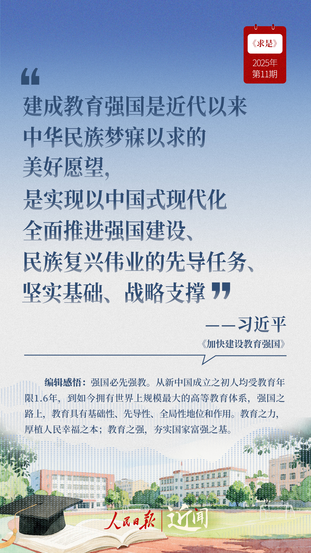 教育是國(guó)之大計(jì)、黨之大計(jì)。日前,《求是》雜志發(fā)表習(xí)近平總書記重要文章《加快建設(shè)教育強(qiáng)國(guó)》?!叭姘盐战逃恼螌傩浴⑷嗣駥傩?、戰(zhàn)略屬性”“讓教育改革發(fā)展成果更多更公平惠及全體人民”“讓教師享有崇高社會(huì)聲望、成為最受社會(huì)尊重的職業(yè)之一”……通過這些話,一起感悟習(xí)近平總書記對(duì)教育強(qiáng)國(guó)建設(shè)的謀劃與部署。