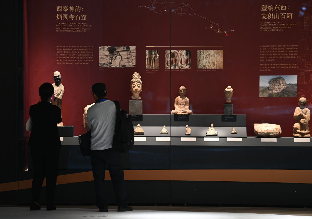 2024年5月18日,觀眾在陜西歷史博物館參觀“從長安出發(fā):絲路申遺成功十周年主題展”。展覽集中展出中國、哈薩克斯坦、吉爾吉斯斯坦三國的精品文物,涉及絲綢之路沿線的城市規(guī)劃、宗教信仰、商品貿(mào)易、藝術(shù)生活等方面,講述絲路沿線國家和人民在譜寫人類文明、續(xù)寫人類發(fā)展篇章中的艱難歷程和輝煌成果。