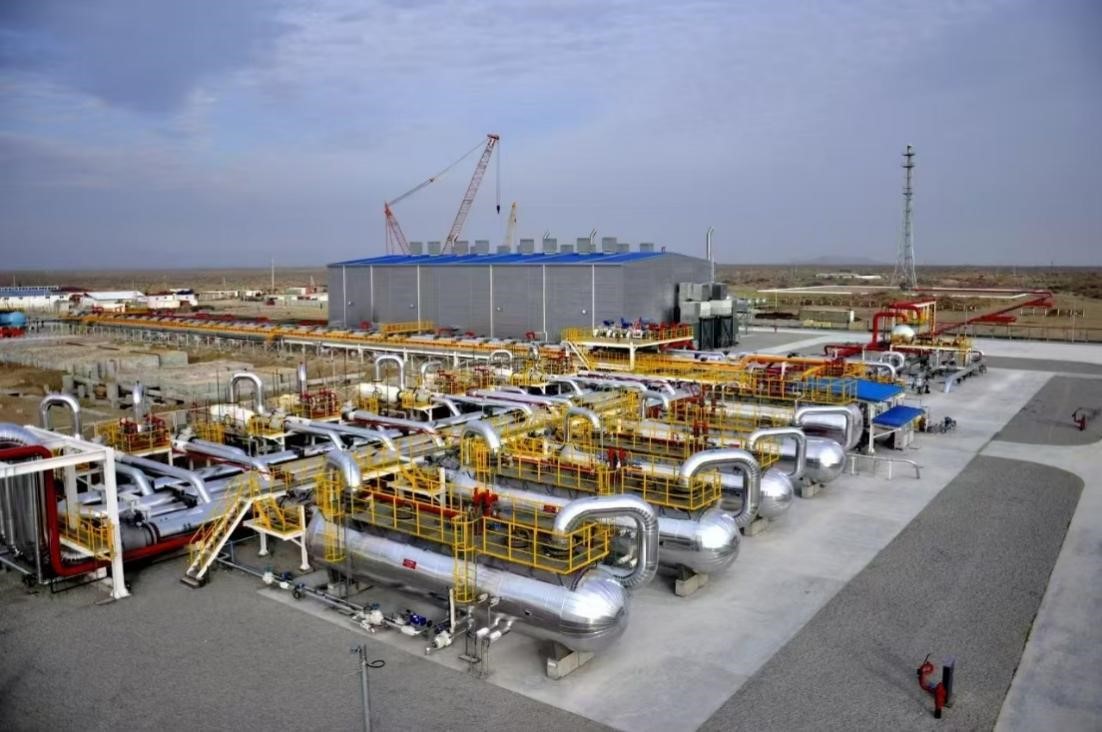 在土庫曼斯坦卡拉庫姆沙漠深處的阿姆河右岸氣田,集氣站高高聳立,輸氣管道縱橫交錯——這里是中國—中亞天然氣管道的重要氣源地。