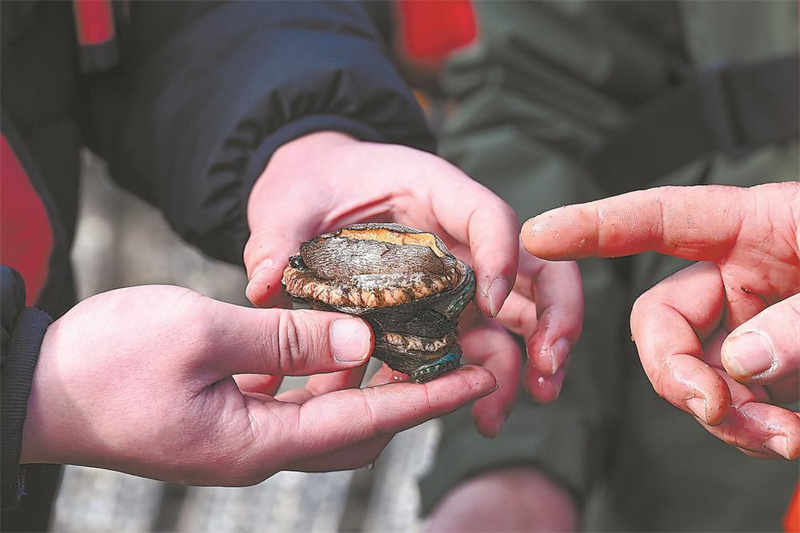 如今,生長(zhǎng)在不同海域?qū)用娴孽U魚、壇紫菜、仙女蛤等,已成為平潭引以為豪的海洋物產(chǎn)。據(jù)統(tǒng)計(jì),平潭鮑魚年產(chǎn)量已近4.8萬(wàn)噸,產(chǎn)值超20億元。其中,品質(zhì)上乘的“平潭鮑”更成為當(dāng)?shù)叵蚝6d的“金名片”。