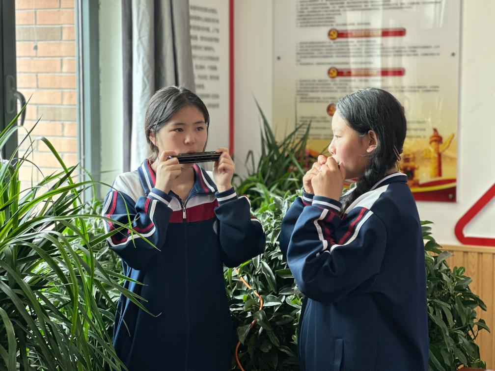 從高海拔牧區(qū)到省會西寧讀書,可愛的老師、親密的伙伴、舒適的學(xué)習(xí)生活環(huán)境,讓2023年入學(xué)的果洛初中生鬧拉很快適應(yīng)。一入學(xué),她就加入上海援青教師闞延俊組建的口琴社團,最愛的曲子是《友誼地久天長》。
