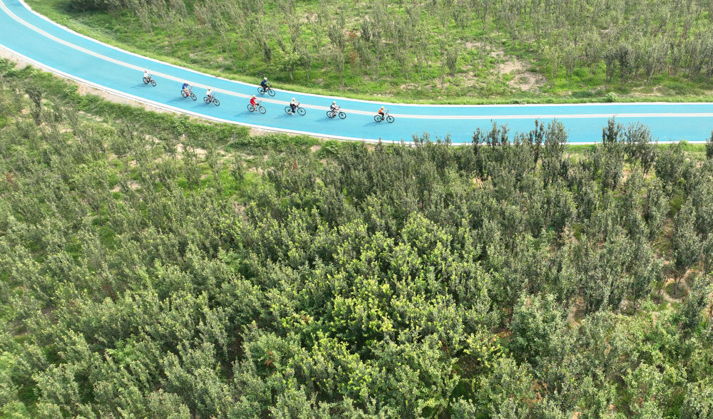 2024年7月10日,自行車愛好者在石家莊市環(huán)城綠道北線騎行休閑。近年來,石家莊依托滹沱河、環(huán)城水系等優(yōu)質(zhì)景觀資源,通過架設(shè)橋梁、提升景觀和完善綠地等措施,打造景美、智游、暢達的城市綠道健身體系,加強環(huán)城綠道與中心城區(qū)串聯(lián)銜接,方便市民無障礙步行或騎行,提升群眾生活幸福感和獲得感。