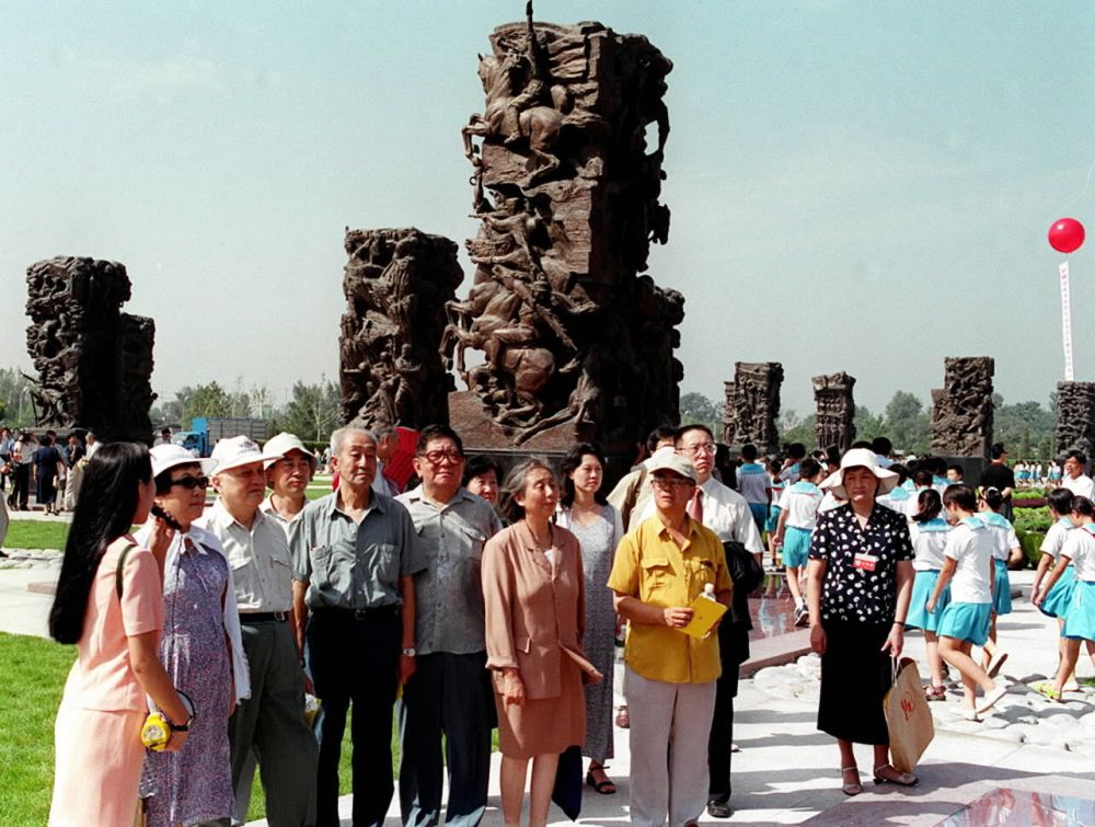 2000年8月15日,北京各界群眾4000多人在剛落成的中國人民抗日戰(zhàn)爭紀(jì)念雕塑園隆重集會,紀(jì)念中國人民抗日戰(zhàn)爭勝利55周年。