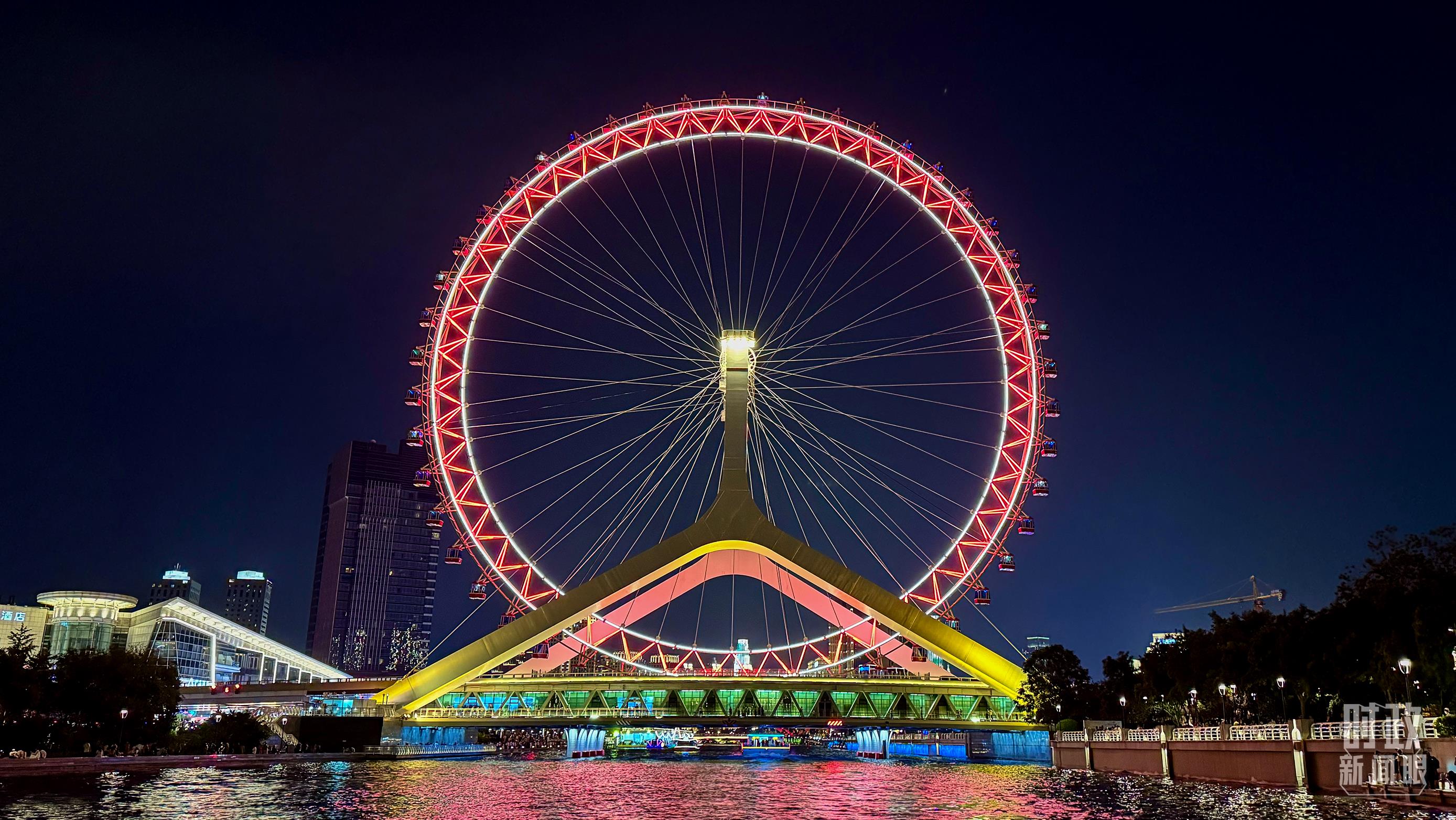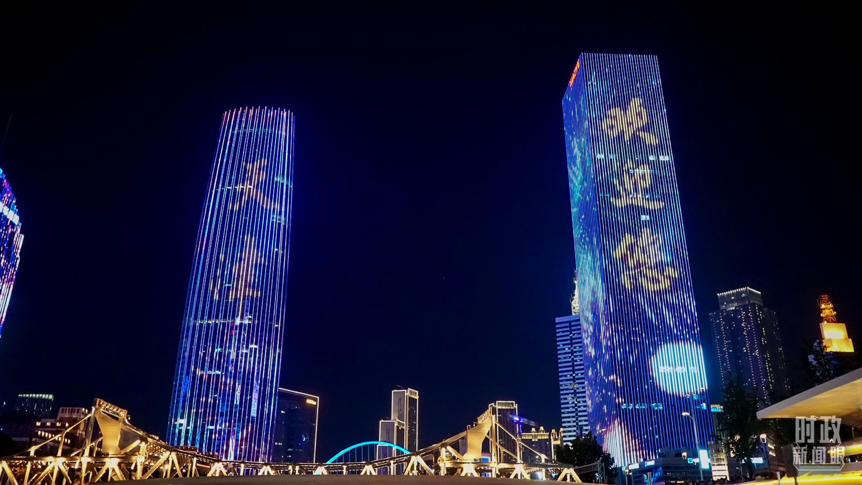天津海河夜景。(總臺(tái)央視記者張宇拍攝)