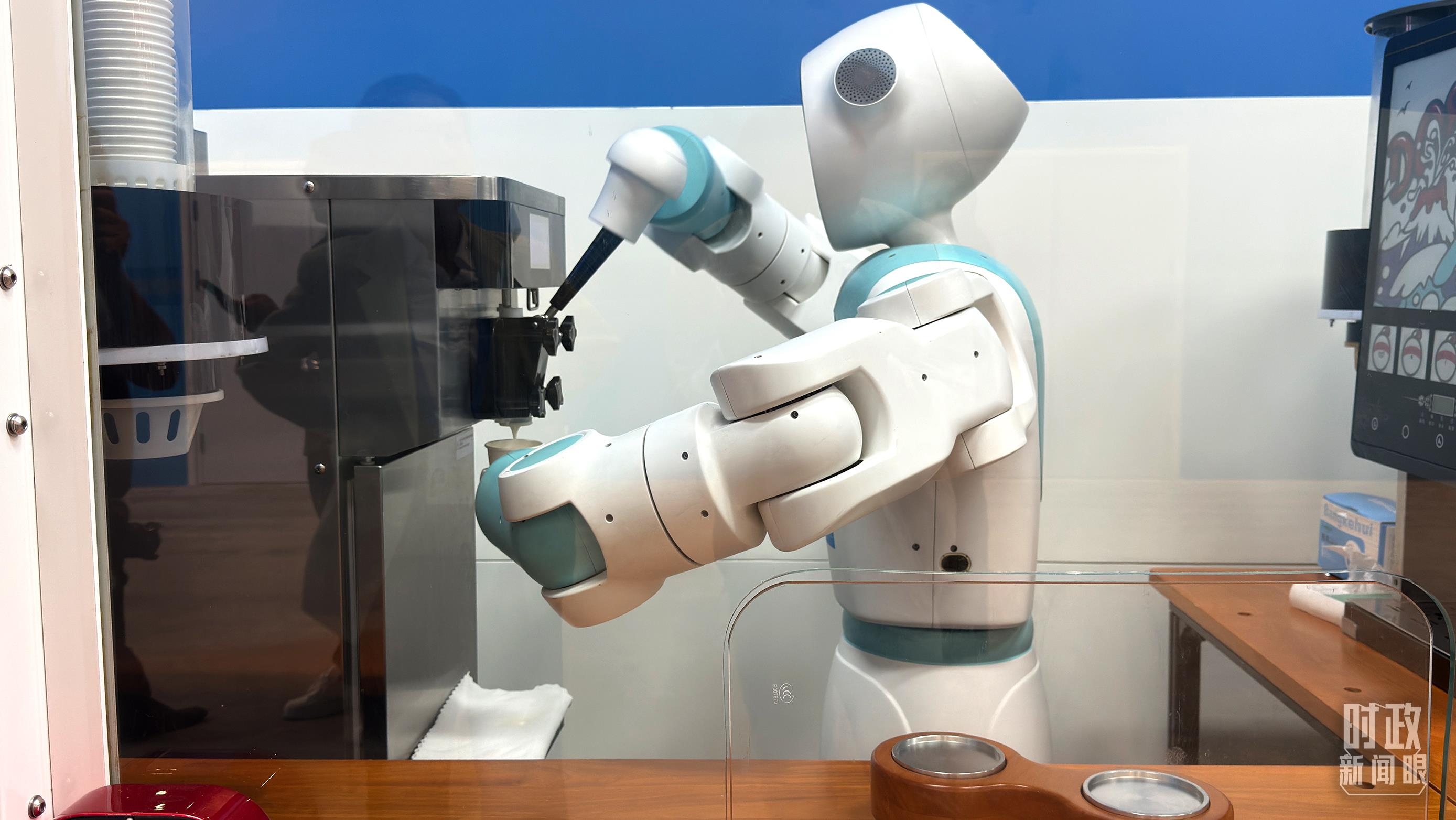 峰會(huì)新聞中心的智能機(jī)器人正在制作冰淇淋。(總臺(tái)央廣記者張永鵬拍攝)