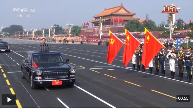 偉大旗幟光耀千秋。中國(guó)共產(chǎn)黨黨旗、中華人民共和國(guó)國(guó)旗、中國(guó)人民解放軍軍旗在受閱部隊(duì)最前方迎風(fēng)招展。檢閱車行進(jìn)至黨旗、國(guó)旗、軍旗前,敬禮號(hào)角響起,習(xí)近平停車肅立,以注目禮向三面旗幟莊嚴(yán)致敬。