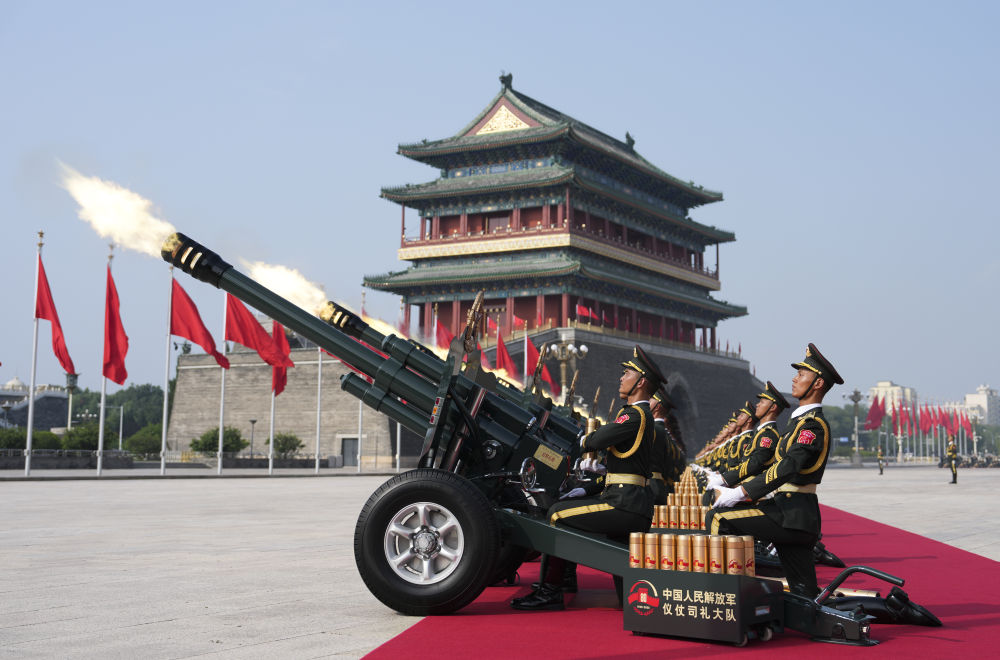 2025年9月3日,紀(jì)念中國人民抗日戰(zhàn)爭暨世界反法西斯戰(zhàn)爭勝利80周年大會(huì)在北京隆重舉行。這是禮炮在天安門廣場鳴響。