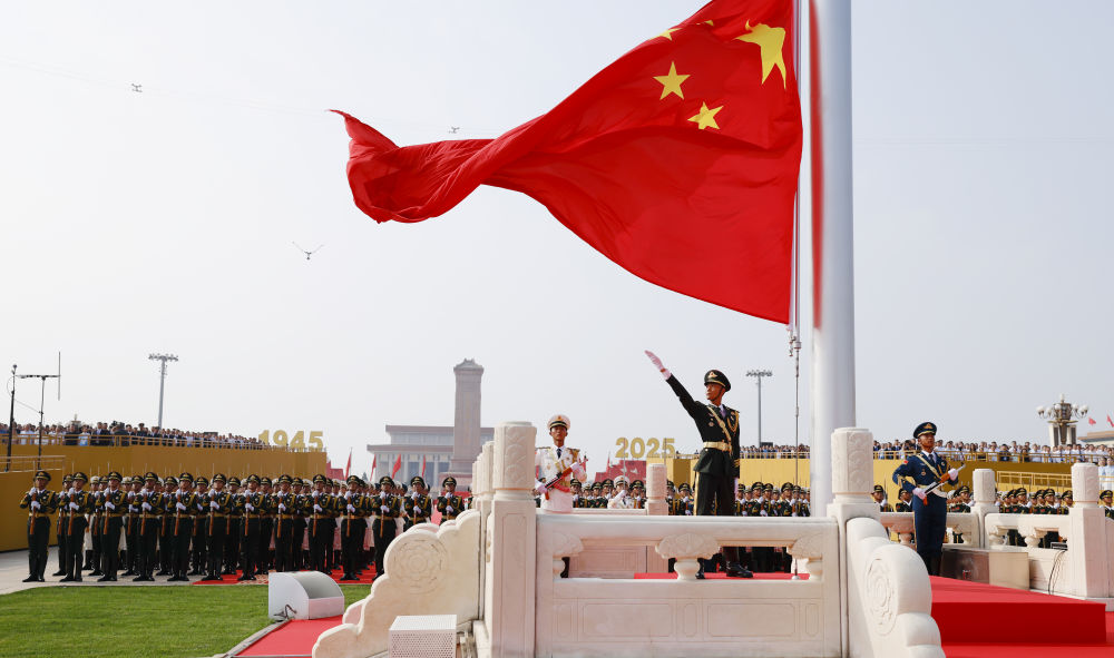 2025年9月3日,紀(jì)念中國人民抗日戰(zhàn)爭暨世界反法西斯戰(zhàn)爭勝利80周年大會(huì)在北京隆重舉行。這是天安門廣場舉行隆重的升國旗儀式。