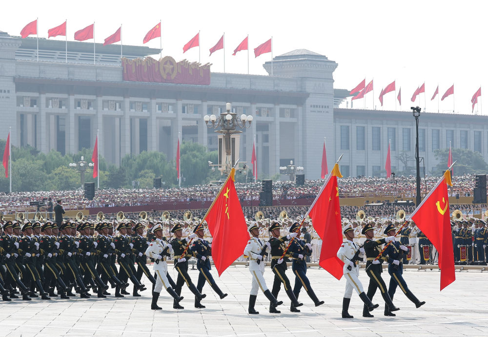 2025年9月3日,紀(jì)念中國人民抗日戰(zhàn)爭暨世界反法西斯戰(zhàn)爭勝利80周年大會(huì)在北京隆重舉行。這是戰(zhàn)旗方隊(duì)接受檢閱。