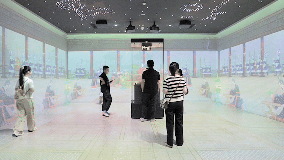 改造后的數(shù)字化何尊展廳吸引參觀者沉浸式觀看(央廣網(wǎng)記者 侯凱奇 攝)