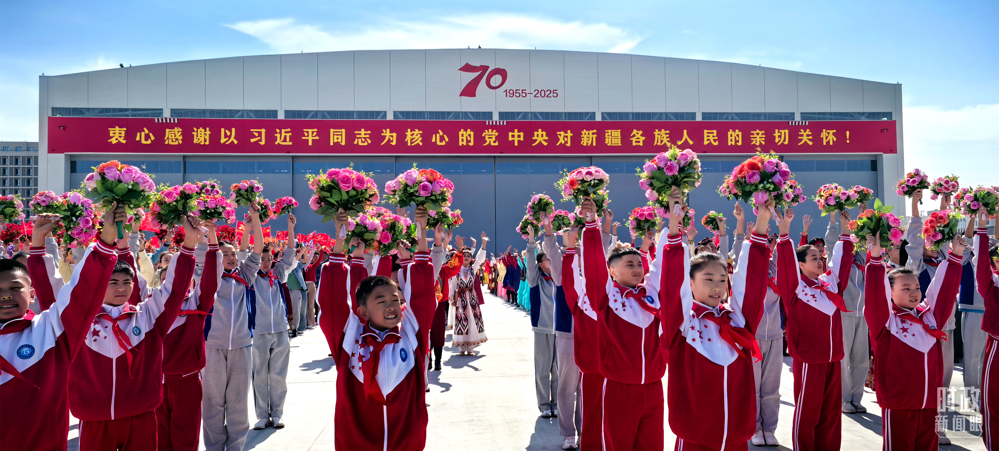 金秋時(shí)節(jié),晴空萬(wàn)里。新疆各族群眾熱情迎接習(xí)近平總書記和中央代表團(tuán)的到來。