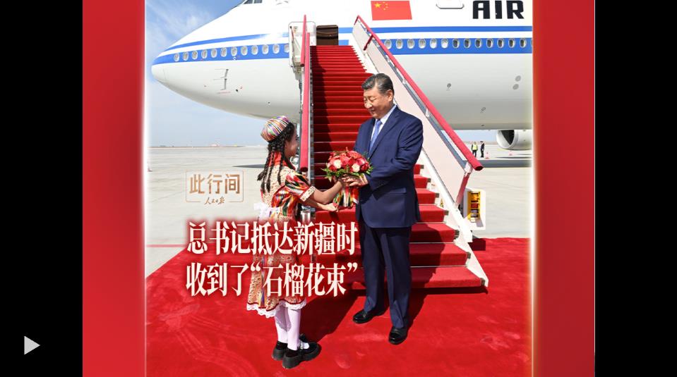 習近平率中央代表團23日下午乘專機抵達烏魯木齊,出席新疆維吾爾自治區(qū)成立70周年慶祝活動,新疆各族群眾在機場熱烈歡迎??倳浭盏降幕ㄊ铮b點了美麗的石榴。如今,“石榴籽”的妙喻為人熟知,民族團結(jié)觀念深入人心。