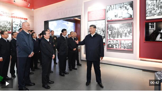 24日上午,習(xí)近平總書記在烏魯木齊文化中心展覽館參觀新疆維吾爾自治區(qū)成立70周年主題成就展。該展覽全景展現(xiàn)了70年來在中國共產(chǎn)黨堅(jiān)強(qiáng)領(lǐng)導(dǎo)下、在全國各地大力支援下,新疆各族人民團(tuán)結(jié)一心、艱苦奮斗、頑強(qiáng)拼搏取得的輝煌成就。
