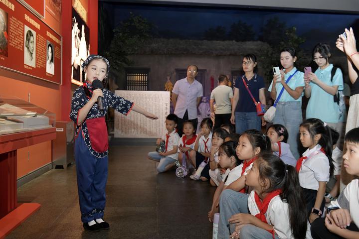 2025年8月7日,在山東省臨沂市沂蒙革命紀(jì)念館,沂蒙紅孩子文藝先鋒隊(duì)的房沫昕在講述紅色故事《沂蒙紅嫂祖秀蓮》。2024年9月,位于沂蒙革命老區(qū)的山東省臨沂市以“傳承沂蒙精神”為宗旨組建沂蒙紅孩子文藝先鋒隊(duì),通過歌舞、朗誦、故事講述、舞臺(tái)劇等紅色主題文藝節(jié)目,增強(qiáng)紅色文化感染力,不斷為紅色基因代代相傳注入新生力量。2025年5月12日,云南省昭通市威信縣第一中學(xué)學(xué)生在大屏上紅色研學(xué)實(shí)踐基地體驗(yàn)編織草鞋。200余名學(xué)生在紅色研學(xué)實(shí)踐基地親手編織草鞋、制作蠟染,并參觀了扎西會(huì)議舊址、紅軍長(zhǎng)征過云南情景體驗(yàn)館,在實(shí)踐互動(dòng)中重溫紅色革命歷史。威信縣立足紅色文化資源優(yōu)勢(shì),先后建成扎西會(huì)議紀(jì)念館、紅軍長(zhǎng)征標(biāo)語館等紅色文化展館,以舊址遺跡為“教室”,以文物史料為“教材”,設(shè)計(jì)開發(fā)多門精品研學(xué)課程和線路,在深入開展紅色研學(xué)系列活動(dòng)中傳承紅色基因。