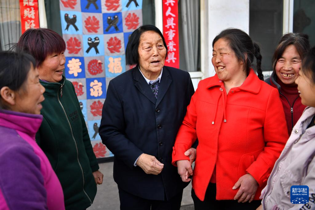 2019年3月23日,申紀(jì)蘭(左三)在山西省平順縣西溝村與村民分享全國(guó)兩會(huì)精神。新華社記者 曹陽(yáng) 攝