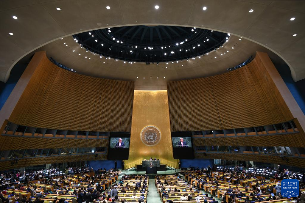 這是2025年9月22日在位于紐約的聯(lián)合國(guó)總部拍攝的聯(lián)合國(guó)大會(huì)紀(jì)念北京世婦會(huì)30周年高級(jí)別會(huì)議現(xiàn)場(chǎng)。新華社記者 李睿 攝