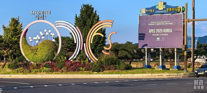 深秋時節(jié),千年古城慶州明凈如畫,街道兩側(cè)懸掛著APEC會議旗幟。亞太經(jīng)合組織(APEC)第三十二次領導人非正式會議即將在這里舉行。