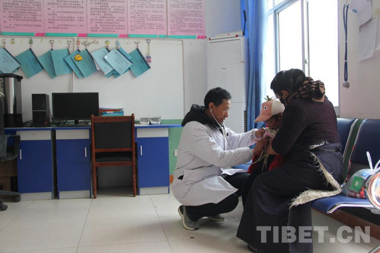 圖為吾金旦增為孩子進(jìn)行檢查 攝影:王茜