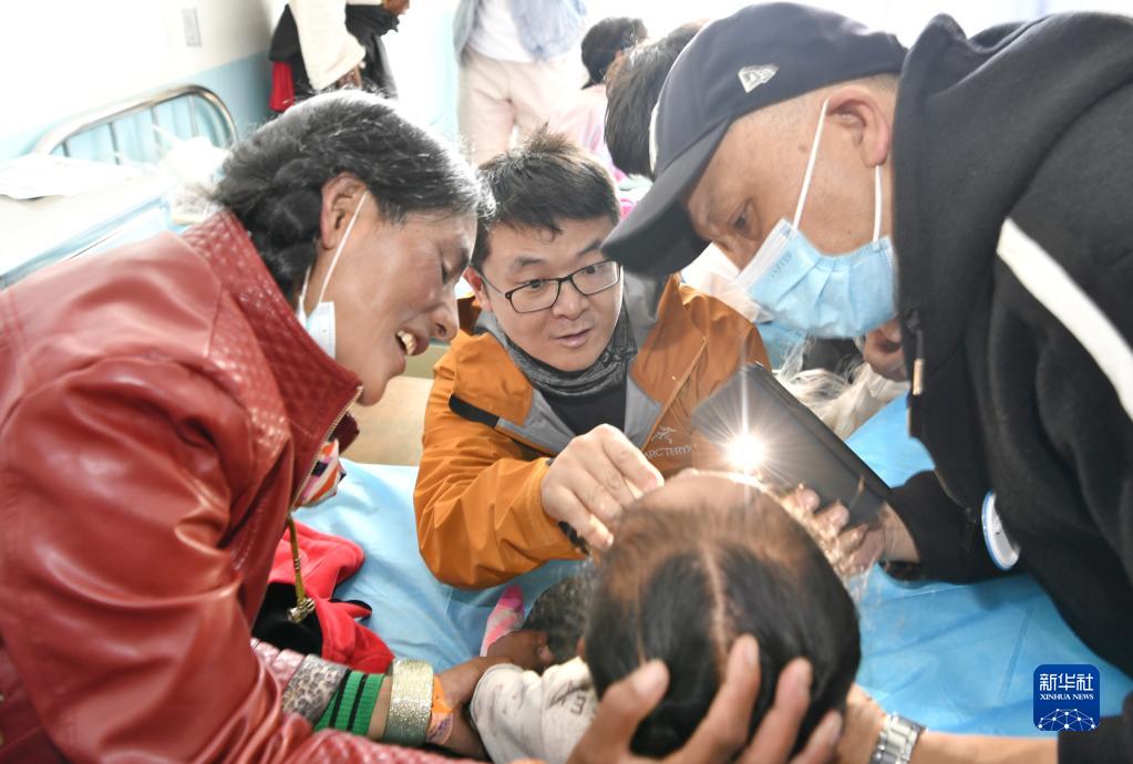 7月30日,中國醫(yī)學(xué)科學(xué)院整形外科醫(yī)院醫(yī)生王克明(中)在阿里地區(qū)人民醫(yī)院看望一名術(shù)后兒童。新華社記者 張汝鋒 攝