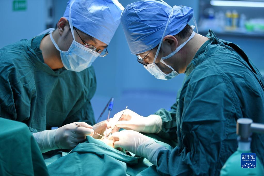 7月31日,中國醫(yī)學(xué)科學(xué)院整形外科醫(yī)院醫(yī)生王克明(右)在阿里地區(qū)人民醫(yī)院為一名唇腭裂患者做修復(fù)手術(shù)。新華社記者 張汝鋒 攝