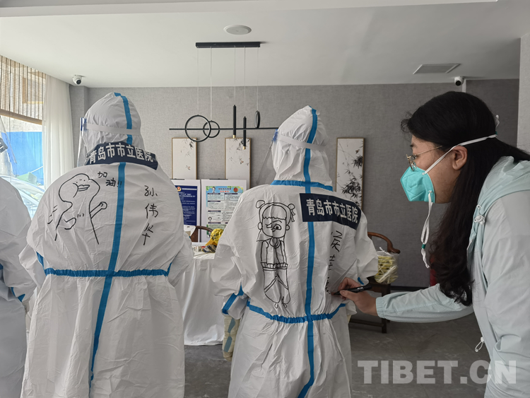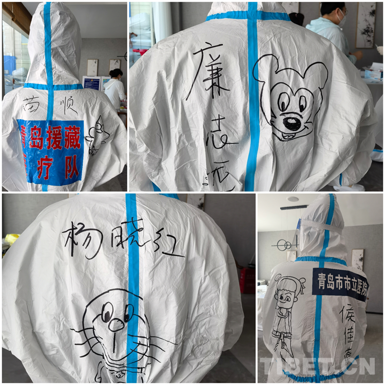 中國西藏網(wǎng)訊 青島援藏醫(yī)療隊(duì)自8月17日進(jìn)藏以來, 隊(duì)員們無論工作多累多難、高原反應(yīng)有多難受,都沒有一句怨言,依然堅(jiān)持在西藏自治區(qū)日喀則市戰(zhàn)“疫”一線。工作之余,來自青島市市立醫(yī)院本部ICU的鐘翔宇發(fā)揮出了她的“隱藏技能”——在醫(yī)療隊(duì)的“大白”身上畫上漫畫,用表情包背到身上的方式給隊(duì)友們加油鼓勁兒。身著漫畫“戰(zhàn)袍”的隊(duì)員們斗志昂揚(yáng),朝氣蓬勃,互相鼓勵幫助,完成了一天天的工作任務(wù)。而這些古靈精怪的漫畫,在戰(zhàn)“疫”一線也成了一道靚麗的風(fēng)景線。(中國西藏網(wǎng) 記者/次旦拉姆 由桑珠孜區(qū)融媒體中心供稿)