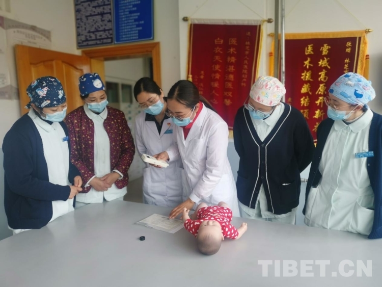 圖為萬(wàn)靜給林芝市人民醫(yī)院婦產(chǎn)科同事進(jìn)行培訓(xùn)