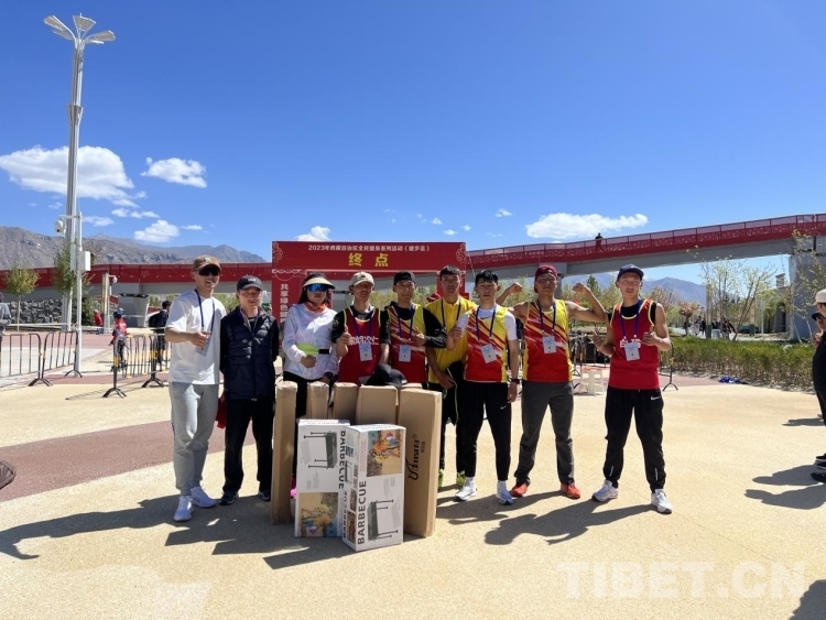 隨后其他組也紛紛來到終點,憑自己的名次到各個領獎處拿獎勵,拍紀念照,現(xiàn)場十分熱鬧?!拔覀兪潜备叩膶W生,通過體育老師得知這個活動,便報名參賽,活動很有意義,不僅對強身健體有幫助,還能帶動全民健身的氛圍,”在健步走活動中獲得第六組第一名的拉薩市北京高級中學學生旦增美朗說。