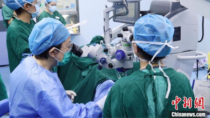 黎曉新總院長(zhǎng)為西藏區(qū)醫(yī)生開(kāi)展手術(shù)帶教?!B門(mén)眼科中心供圖