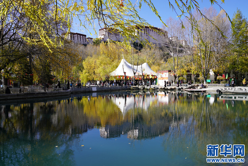 金秋的宗角祿康公園景致別有一番滋味:藍天、碧水與遠處的雪山交相輝映,一切仿佛是畫家手中的調(diào)色盤,美的恰到好處。