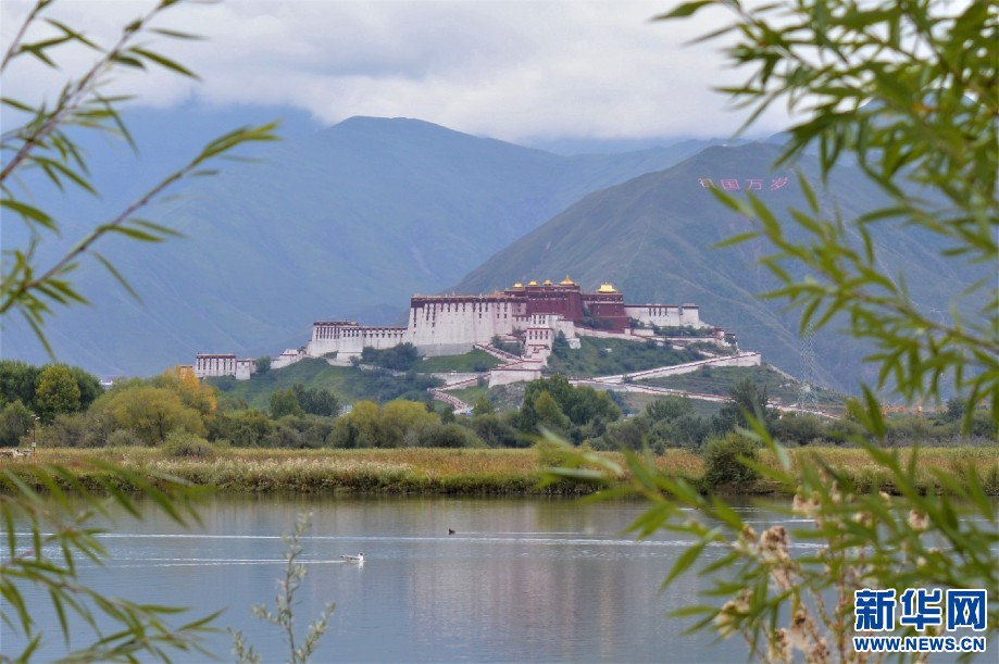 圖為拉魯濕地國家公園內(nèi)遠(yuǎn)眺布達(dá)拉宮(9月11日 攝)。新華網(wǎng) 貢桑央吉 攝(實習(xí)生)