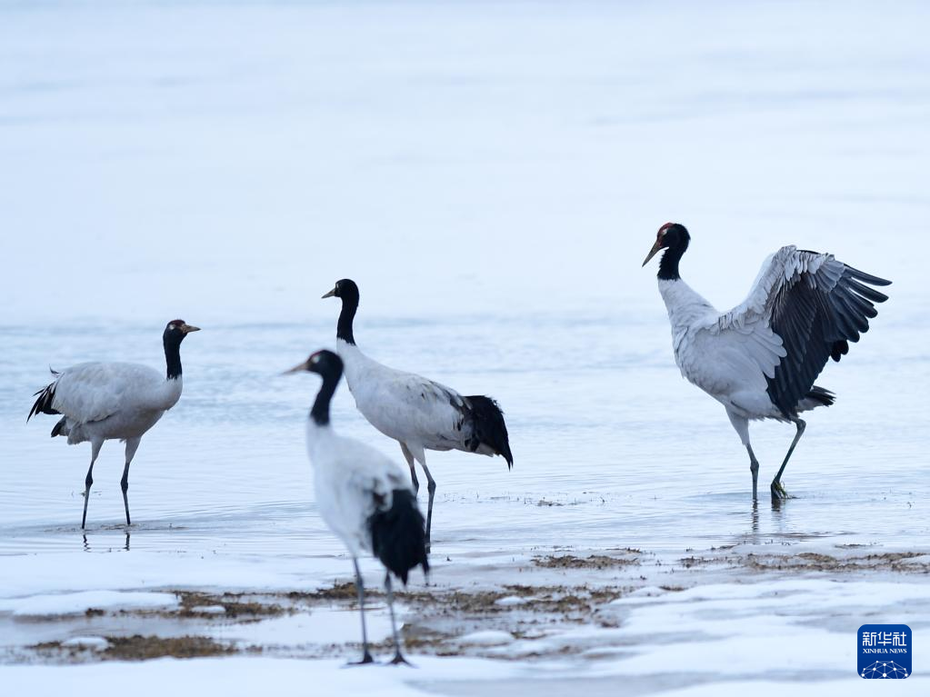 近日,在位于青海省果洛藏族自治州瑪多縣的三江源國家公園黃河源園區(qū)內(nèi),數(shù)只黑頸鶴在此棲息覓食。 黑頸鶴是國家一級重點保護野生動物,主要棲息于海拔2500米至5000米的高原沼澤地、湖泊及河灘地帶,在我國主要分布在青海、西藏、甘肅和四川北部一帶。