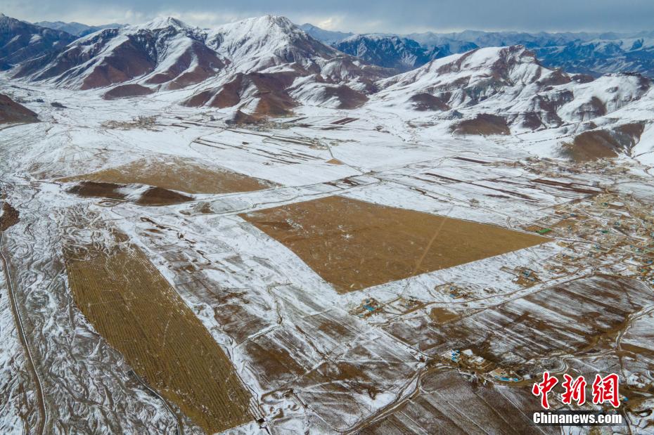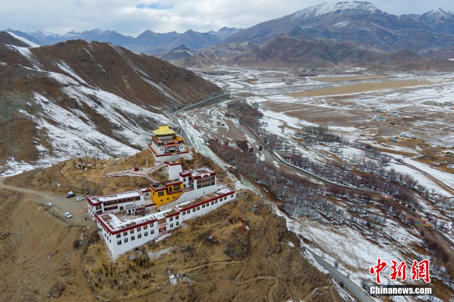 2月23日,航拍西藏林周縣楚杰寺雪后風(fēng)光。 澎波河是拉薩河的主要支流之一,位于拉薩市林周縣,是拉薩青稞主產(chǎn)區(qū)。近日,澎波河谷迎來大范圍降雪,河灘、農(nóng)田、村落、山谷等均被積雪覆蓋,猶如披上了一層“白紗”,一派高原冰雪風(fēng)光,十分壯美。江飛波 攝