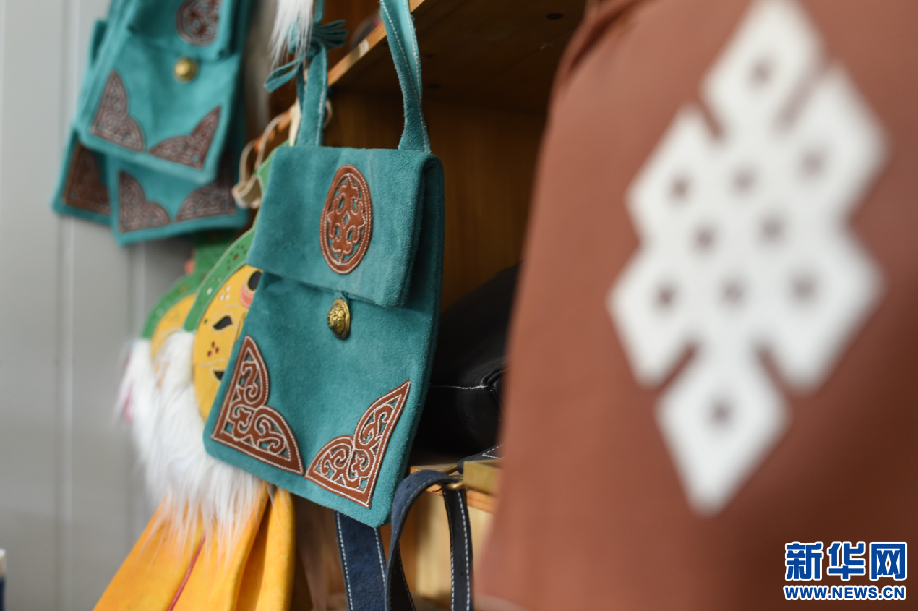 曲水俊巴民族手工皮具制作專業(yè)合作社設計的伸縮包。(2月24日攝)新華網(wǎng) 旦增努布 攝