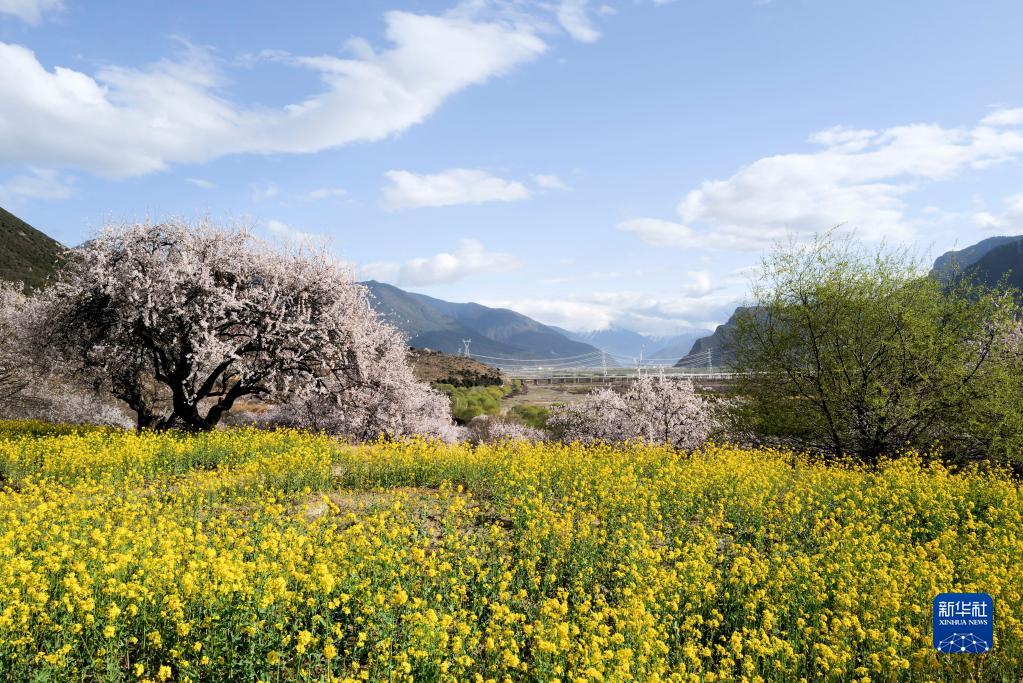 春至西藏,林芝的原野鮮花盛開,景色宜人。
