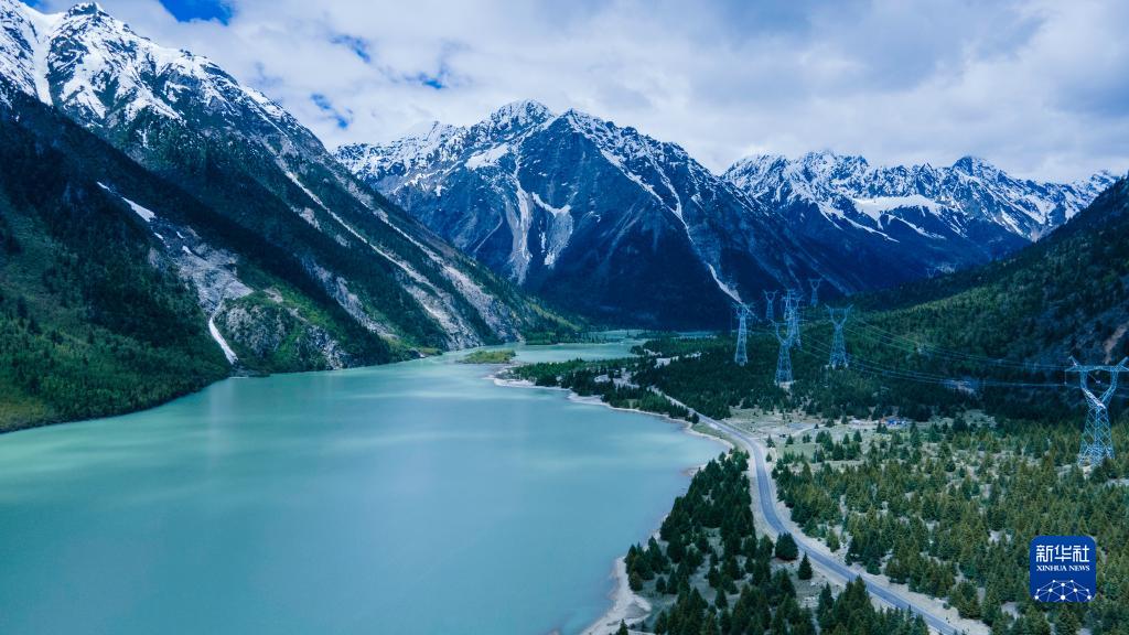 這是5月30日拍攝的然烏湖風(fēng)光(無人機照片)。新華社記者 周荻瀟 攝