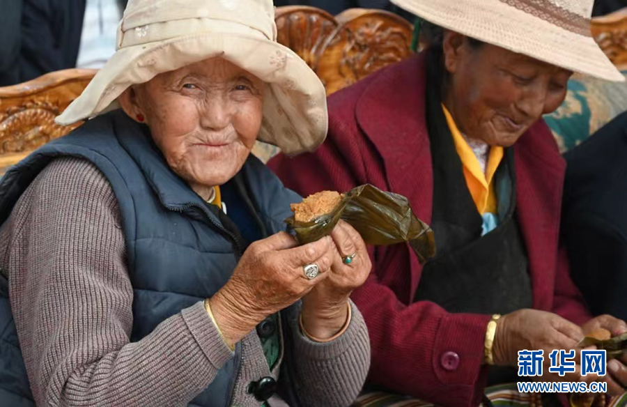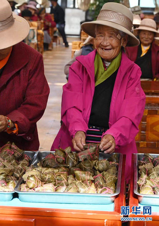 6月3日,西藏山南市集中供養(yǎng)服務中心的老人們開心地領到千里送來的粽子。新華網(wǎng) 王雷 攝
