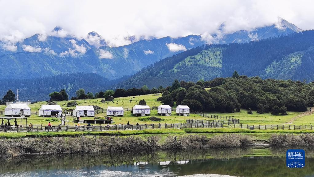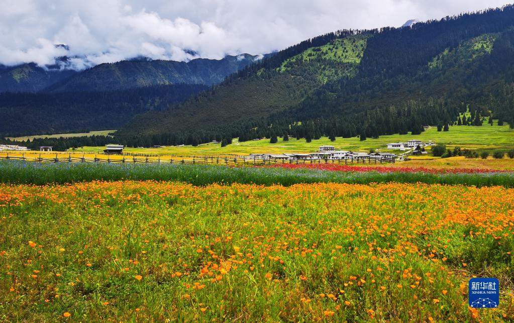 夏日的魯朗鎮(zhèn),溪水潺潺,鮮花盛開,藏式村寨點(diǎn)綴其間,勾畫出一幅恬靜、優(yōu)美的“高原山居圖”。