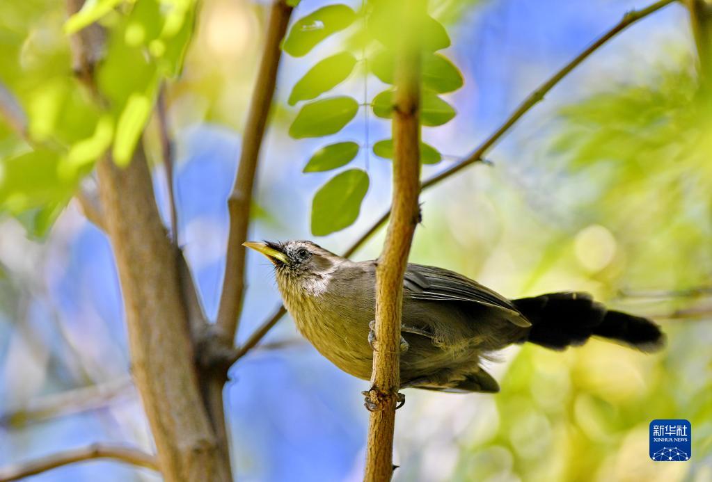槐樹上的山噪鹛(9月21日攝)。新華社記者 張汝鋒 攝
