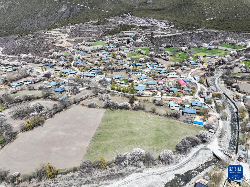 這是3月24日拍攝的古通村波堆桃花谷風景 (無人機照片)。新華社記者 洛卓嘉措 攝
