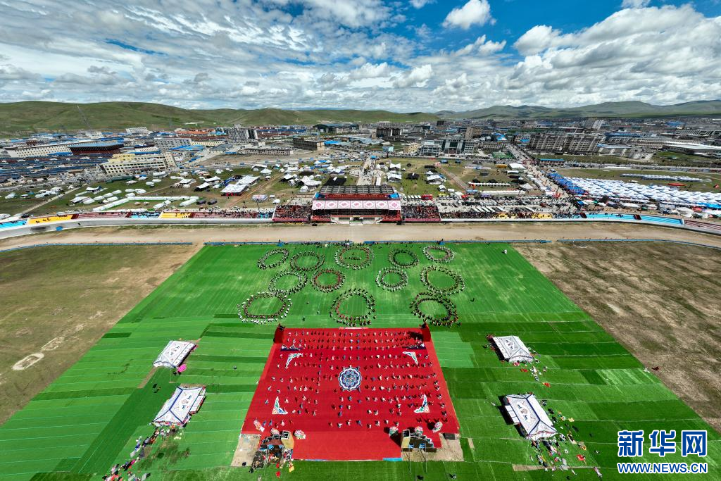 8月10日,演員在開幕式上表演舞蹈(無(wú)人機(jī)照片)。新華網(wǎng) 旦增努布 攝