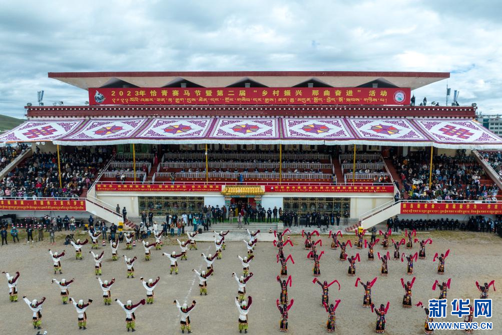 ??近日,2023年恰青賽馬節(jié)開幕式在西藏自治區(qū)那曲市格薩爾王賽馬場(chǎng)舉行,來(lái)自那曲市各縣(區(qū))的演員和歌手共同載歌載舞。