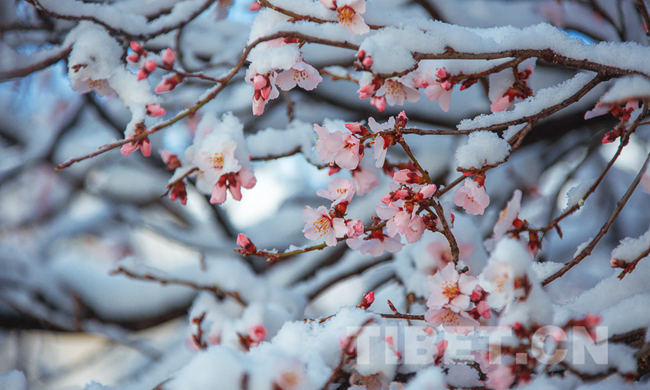 中國西藏網(wǎng)訊 近日來,當(dāng)朋友圈被西藏林芝盛開的桃花瘋狂刷屏之際。在海拔3650米的拉薩,一場雪在一夜間悄然把拉薩銀裝素裹。拉薩市北郊山坡上的帕崩崗數(shù)十棵遒勁的野生山桃樹已經(jīng)吐露花蕊,桃花在白雪的映襯下,愈發(fā)鮮艷動(dòng)人。(中國西藏網(wǎng) 圖、文/趙耀)