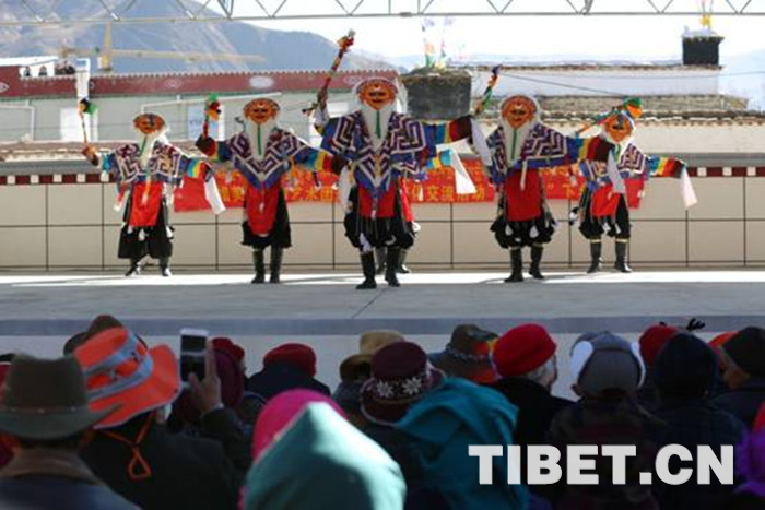 臺上,藏戲表演、男女聲獨唱、舞蹈等群眾喜聞樂見的節(jié)目讓演員們表演得淋漓盡致,精彩的節(jié)目使得臺下觀眾發(fā)出陣陣歡笑,整個院子響起了經久不息的掌聲。