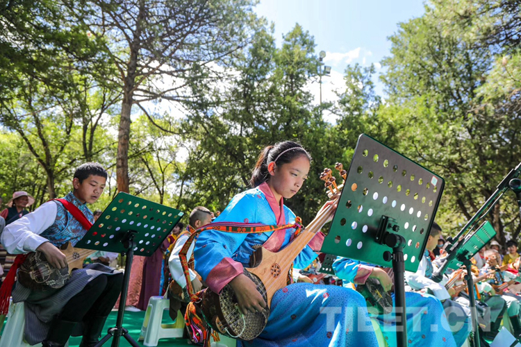 圖為扎念琴班的學(xué)生們正在表演。 圖片由堆龍德慶區(qū)青少年活動(dòng)中心運(yùn)營(yíng)方提供