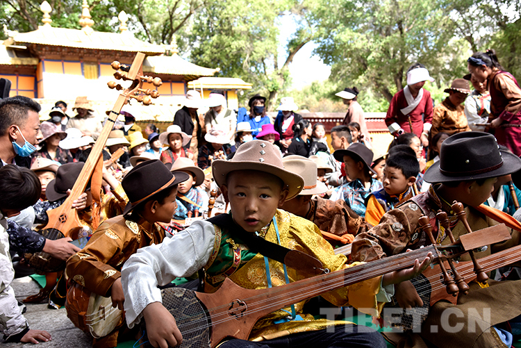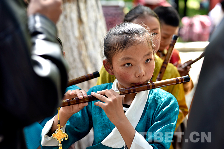 中國(guó)西藏網(wǎng)訊 6月16日,西藏自治區(qū)堆龍德慶區(qū)青少年活動(dòng)中心春季課程展演活動(dòng)在嗩吶演藝的《好漢歌》中拉開(kāi)序幕。此時(shí),羅布林卡藏戲演出臺(tái)前已聚攏了許多家長(zhǎng)和市民。